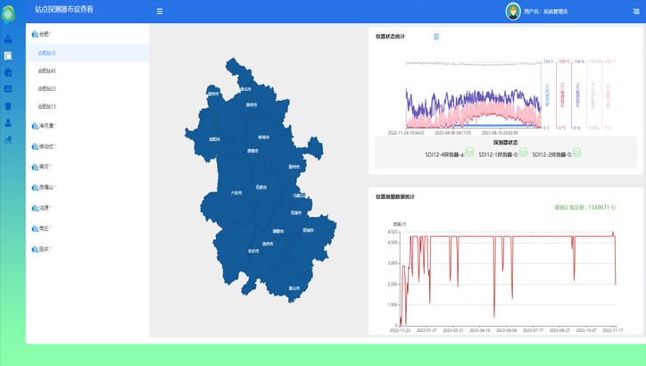 主要功能包括:探测器空间分布、探测器布设查看、探测器数据查看、仪器参数配置、用户管理、角色管理等功能模块。