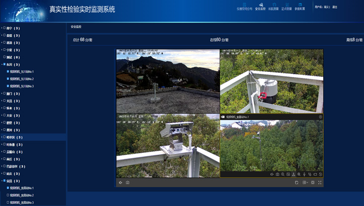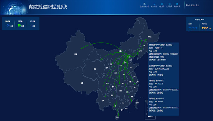 真实性检验实时监测系统可集中管理布设在不同区域的仪器设备,视频相机可对观测区域环境及仪器实时监测、可对视频相机云台进行远程操控;可实时接收、汇聚多光谱相机观测数据并在线计算NDVI指数;具有仪器异常与数据异常提醒;支持用户管理及角色管理。